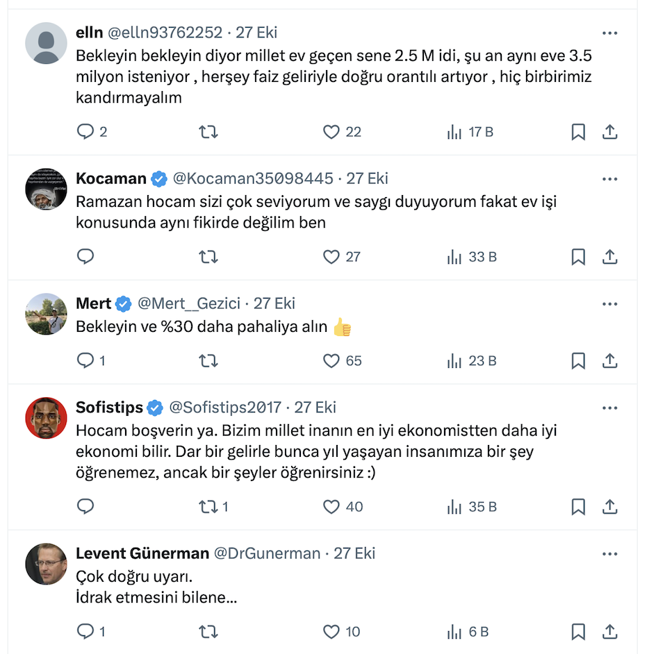 Ekonomist Ramazan Kurtoğlu'nun paylaşımına gelen yorumlar şu şekilde: