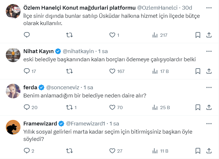 Üsküdar eski Belediye Başkanı Hilmi Türkmen resmi sosyal medya hesabı https://x.com/hilmiturkmen34 üzerinden Üsküdar'da gayrimenkul ve taşınmaz satışlarına ilişkin çok önemli açıklamalar yaptı.