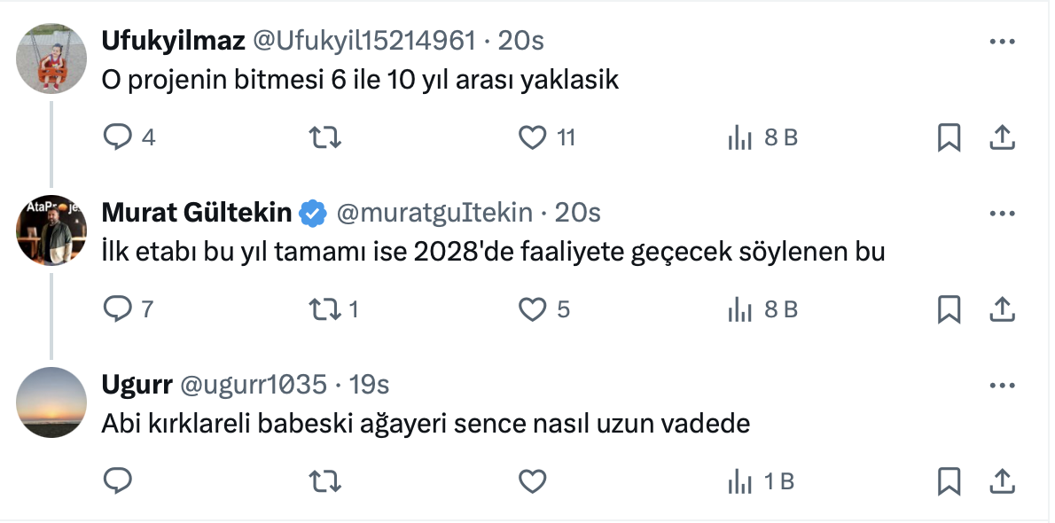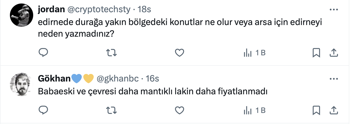 Gayrimenkul Uzmanı Murat Gültekin, resmi sosyal medya hesabı https://x.com/muratguItekin yaptığı paylaşımda “Bu yılın sonunda İstanbul-Edirne YHT devreye girdiği zaman Çatalca ve Kırklareli’de arsa, Lüleburgaz’da konut fiyatları çıldırmış olacak” dedi.