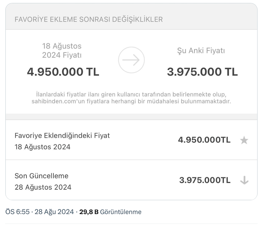 Çok iyi bir lokasyonda olan bir arsa 10 gün içinde 1.000.000 TL fiyat düşürdü.