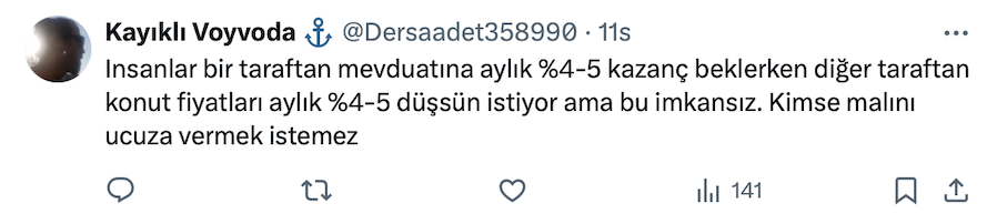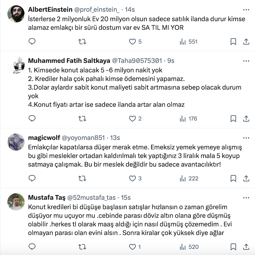 Girişimci, Tok’s Emlak ve D.T İnşaat Kurucusu Deniz Tok resmi sosyal medya hesabı üzerinden yaptığı paylaşımda konut fiyatlarının düşmeyeceğini söyledi.