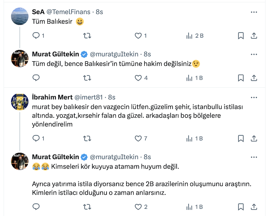 Gayrimenkul Uzmanı Murat Gültekin'in paylaşımına gelen yorumlar şu şekilde:
