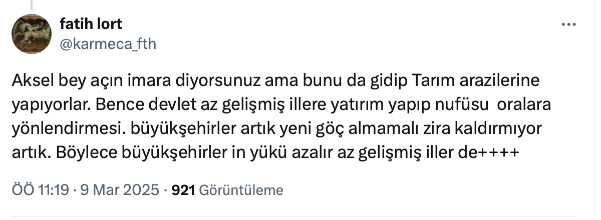 •Dünyanın arazisi var açın kardeşim imarı neden milleti bir tarafa sıkıştırıyorsunuz,bu rant olayından herkes şikayetçi.