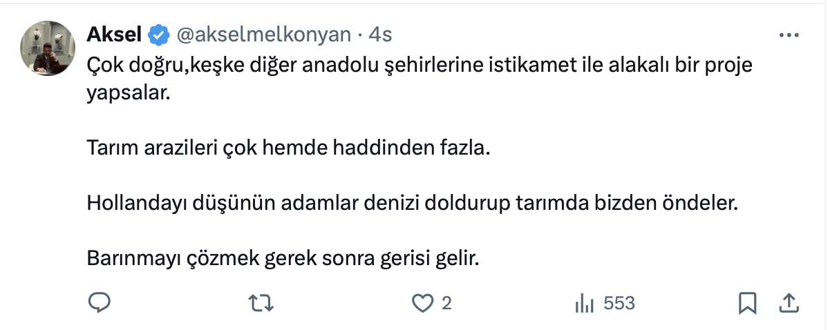Konut yatırımları son yılların en çok merak edilen ve araştırılan konuları arasında yer alırken, yatırımcıların en çok takip ettiği isimler arasında bulunan Toprak Yatırımcısı ve Danışmanı Aksel Melkonyan resmi X hesabı https://x.com/akselmelkonyan üzerinden yine çok konuşulacak bir paylaşım yaptı.