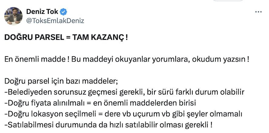 Deniz Tok'un paylaşımı şu şekilde:
