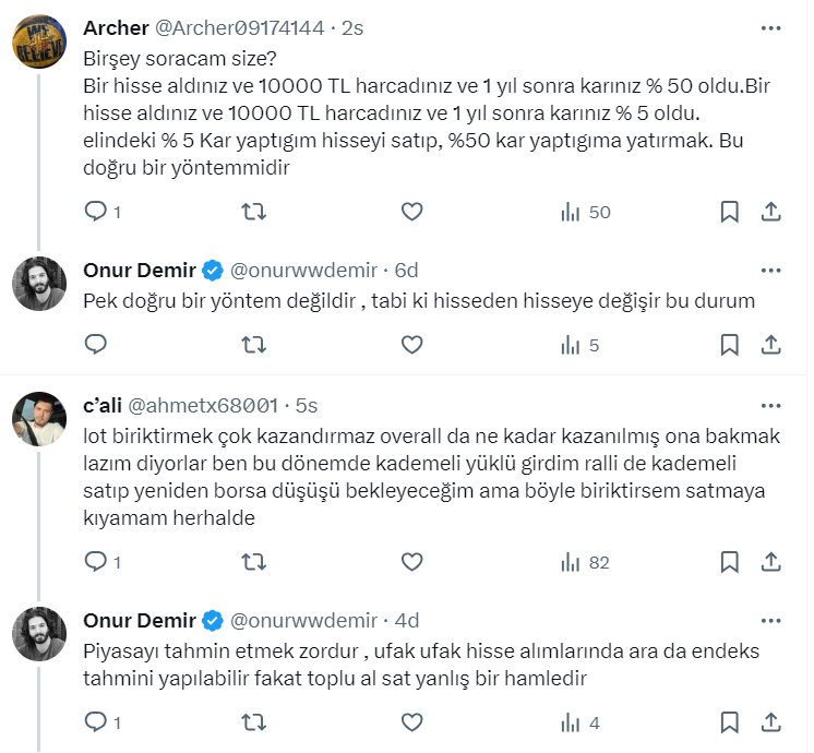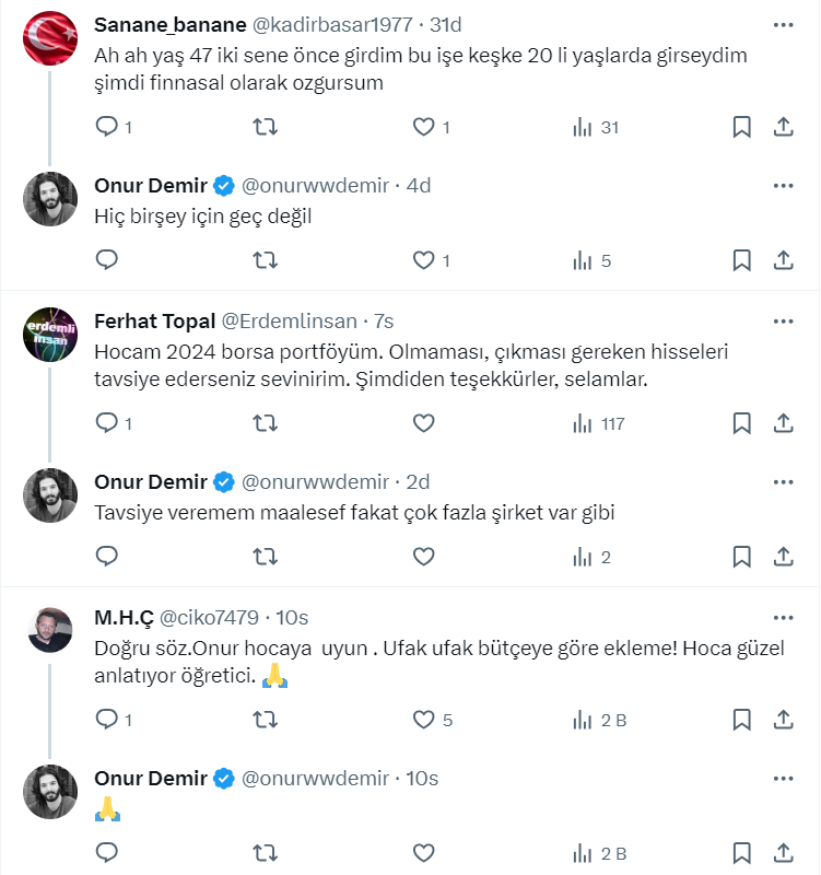 Borsa İstanbul yeni haftaya yatay başlarken Uzun Vade Hisse Senedi Yatırımcısı Onur Demir'den de borsa yatırımcıları için çok önemli tüyolar geldi. İşte Onur Demir'in resmi X hesabı üzerinden yaptığı o paylaşım...