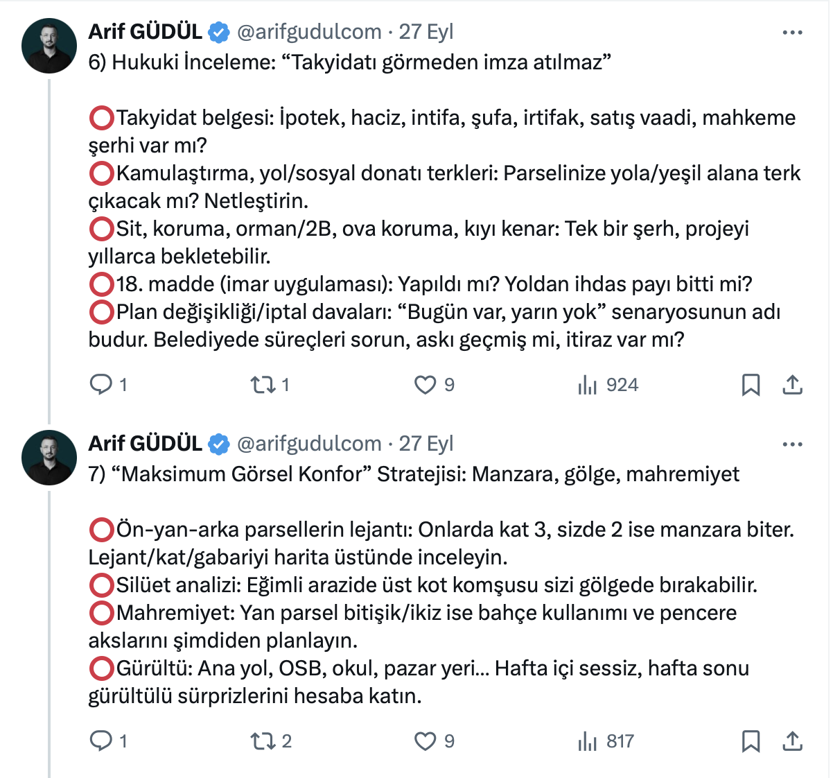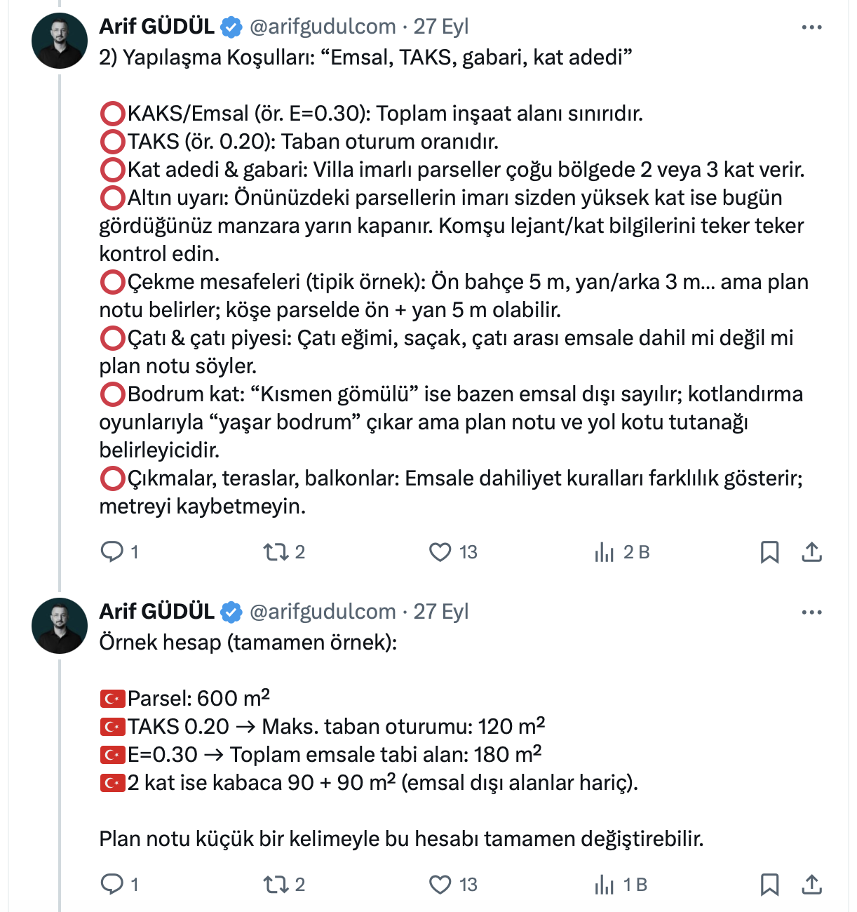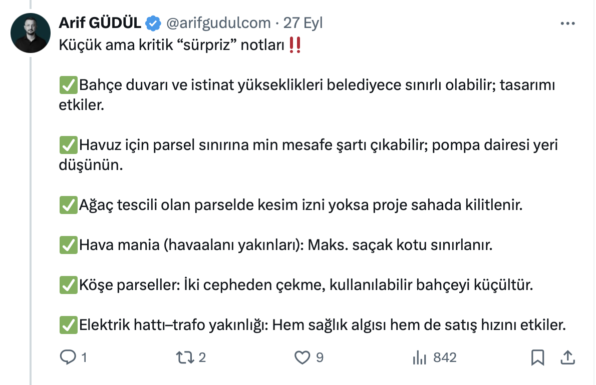 Toprak Yatırımcısı ve talepbul'un Yönetim Kurulu Başkanı Arif Güdül resmi sosyal medya hesabı üzerinden müstakil villa yaptırmak isteyenlerin ne yapmaları gerektiğini paylaştı.