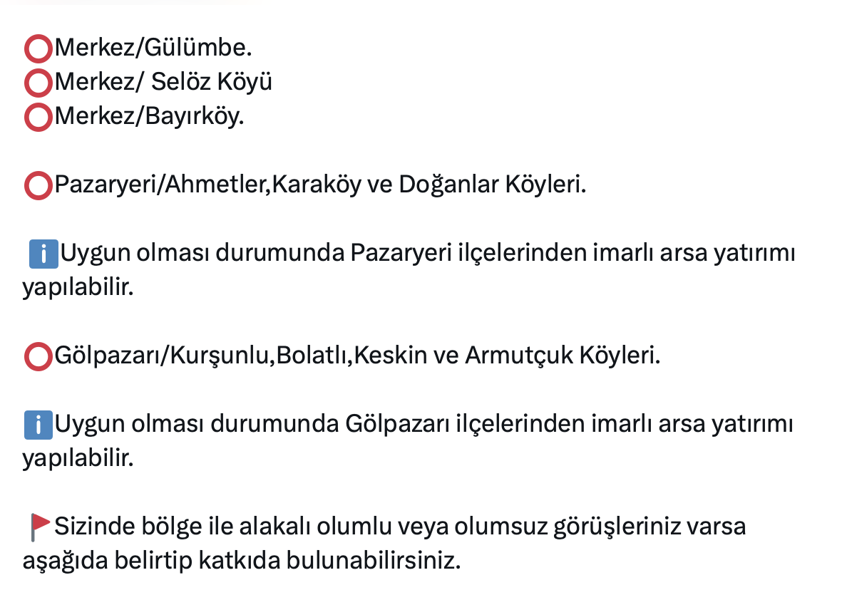 Yatırım için benim gözümde uyun olan ilçe ve köyler aşağıdaki gibidir