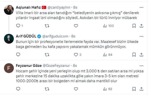 Toprak yatırımcısı Arif Güdül, sosyal medya hesabı X'ten villa imarlı arsa alırken dikkat edilmesi gereken en önemli maddeleri açıkladı. İşte o paylaşım ve gelen yorumlar....
