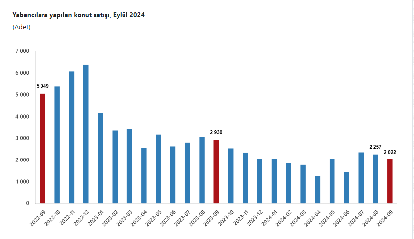 YABANCIYA EYLÜL’DE 2 BİN 22 KONUT SATILDI