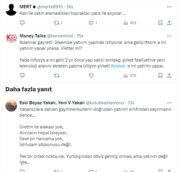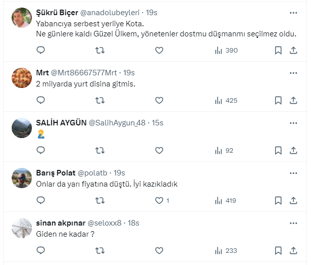 Türkiye'ye 2023’te gelen 10.6 milyar dolarlık uluslararası doğrudan yatırımın 3.6 milyar doları yabancılara satılan gayrimenkullerden geldi. Vatandaş, “Yabancıya serbest, yerliye kota, bu kadar satış olursa ev fiyatlarının uçması normal” diye tepki gösterdi.
