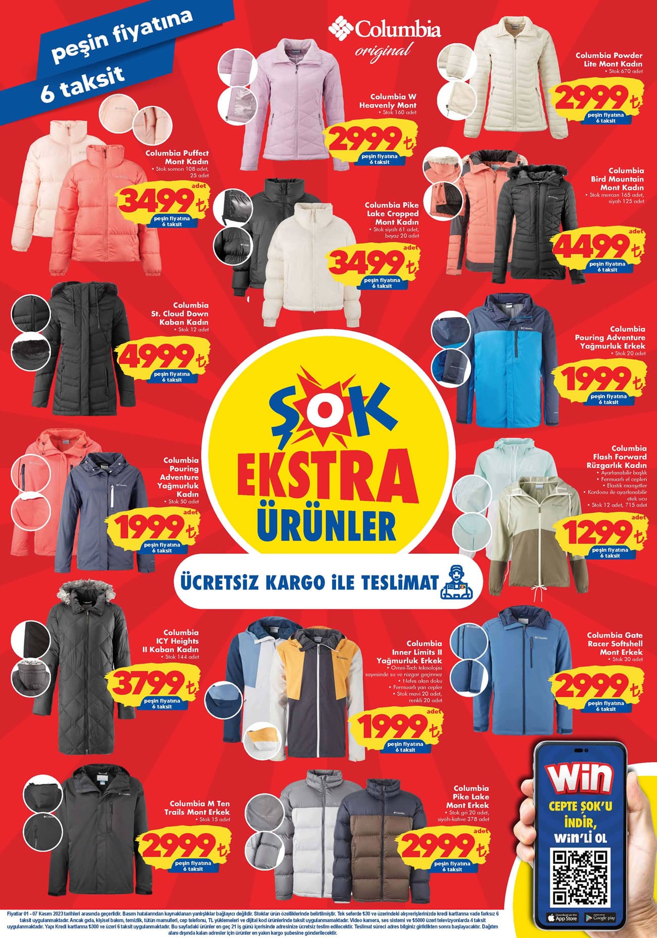 ŞOK Market 1 Kasım kataloğu yayımladı. Katalogda Columbia'nın orijinal montları, yağmurluk ve rüzgarlıkları yer alıyor. ŞOK'ta satışa çıkarılan ürünler 1-7 Kasım arasında tüketicinin beğenisine sunulacak. Öte yandan ŞOK Markette bu hafta mutfak araç gereçleri, tekstil malzemeleri, temel gıda ürünleri ve elektrikli küçük ev aletleri gibi ürünler yer aldı.