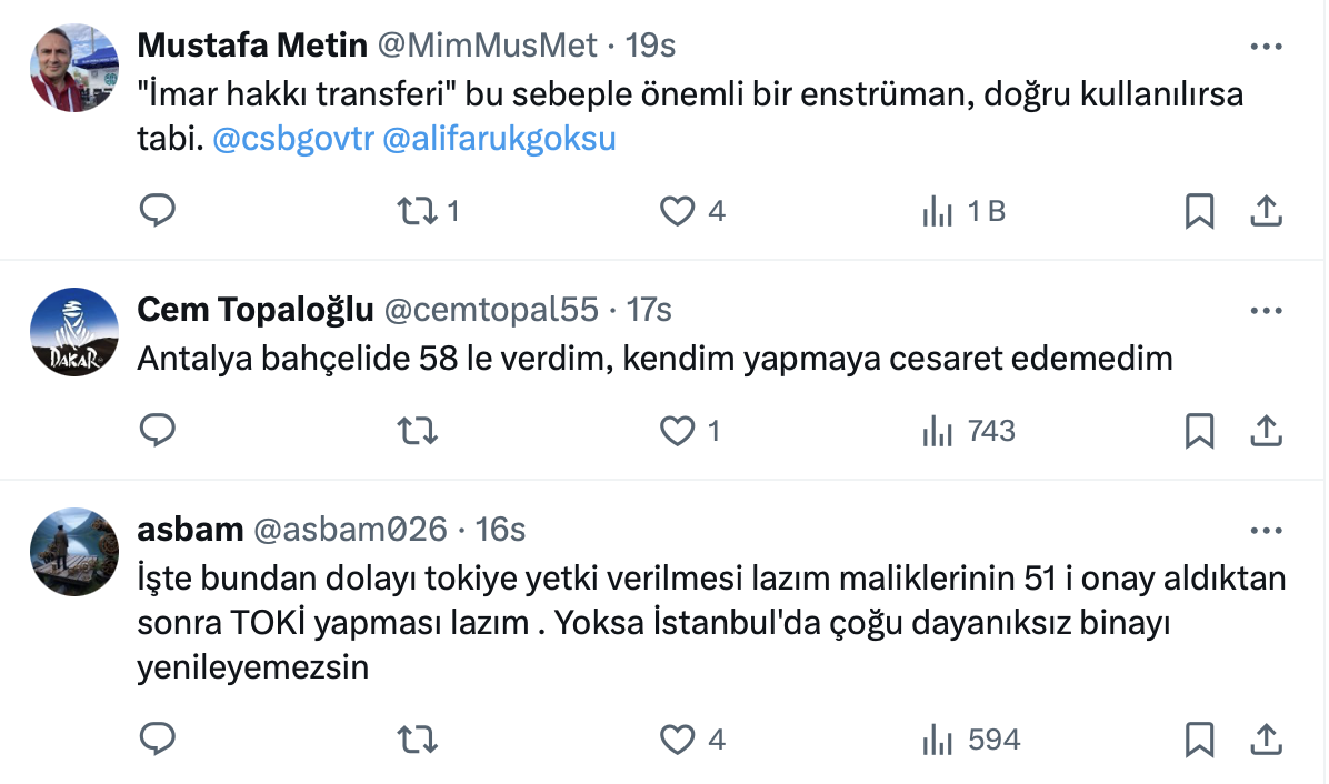 İnşaat Doktoru paylaşımında “Eğer en az %45 (müteahhit) / 55 (mal sahibi) kat karşılığı kentsel dönüşüme uygun değilse alınmaz.” İfadelerini kullandı.