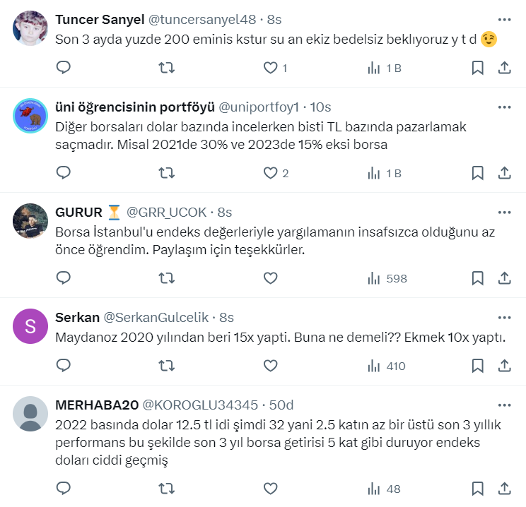 Peki yatırımcılar bu konu ile ilgili ne düşünüyor? Borsa Filozofu'nun paylaşımına gelen yorumlar şu şekilde: