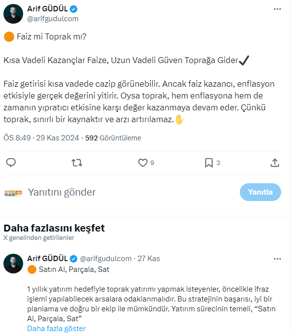 İşte Toprak Yatırımcısı ve talepbul'un Yönetim Kurulu Başkanı Arif Güdül'ün sosyal medyadan yaptığı o paylaşım...