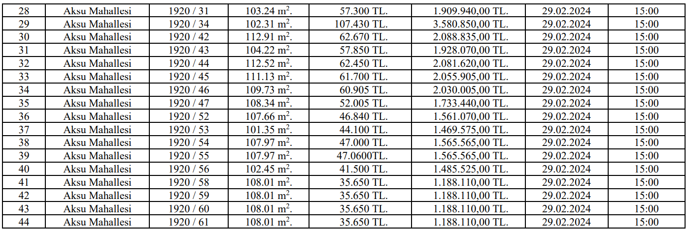 1-Mülkiyeti Giresun Belediye Başkanlığına ait, Aksu Mahallesi’nde bulunan 44 (kırk dört) adet arsanın 2886 sayılı Devlet İhale Kanunu’nun 35/A