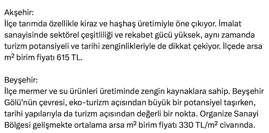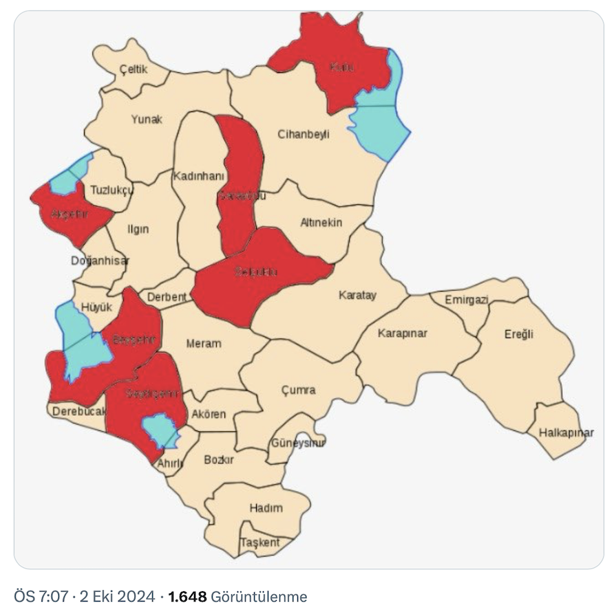 Selçuklu, Kulu, Sarayönü, Seydişehir, Akşehir ve Beyşehir en mantıklı ilçeler.