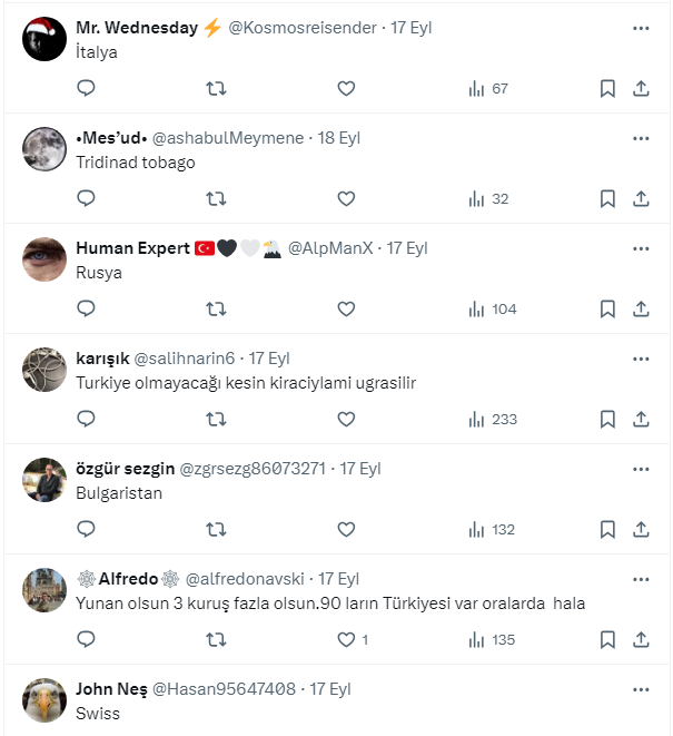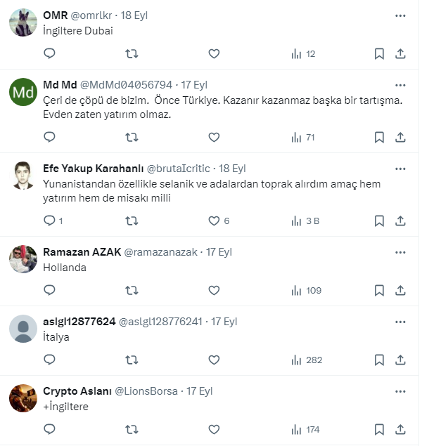 Gayrimenkul uzmanı Murat Gültekin sosyal medya hesabından '' Fırsatını bulsanız yatırım için hangi ülkeden ev alırsınız?'' sorusunu sordu, bakın kimler en çok nereden ev almak istiyor...