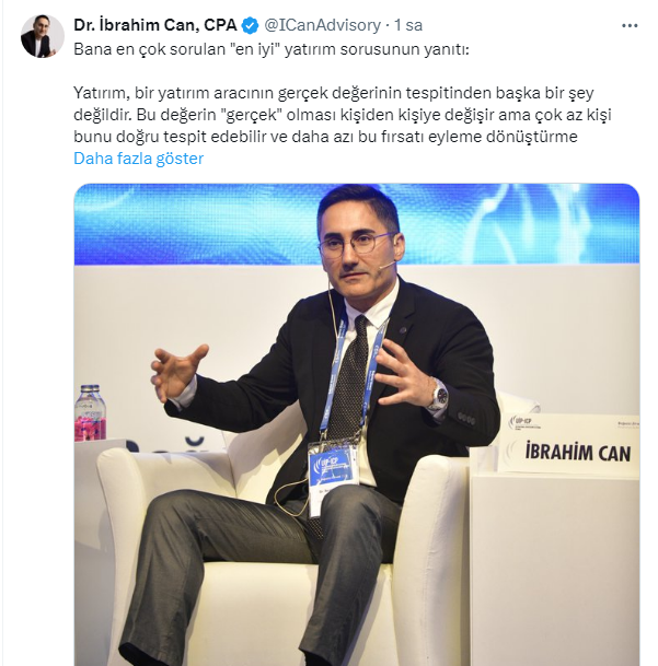 Finansal Yönetim Danışmanı Dr. İbrahim Can, yatırımcıların en çok merak ettiği 'en iyi yatırım hangisi?' sorusu sosyal medya hesabından cevapladı.