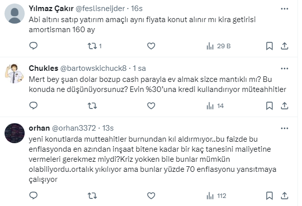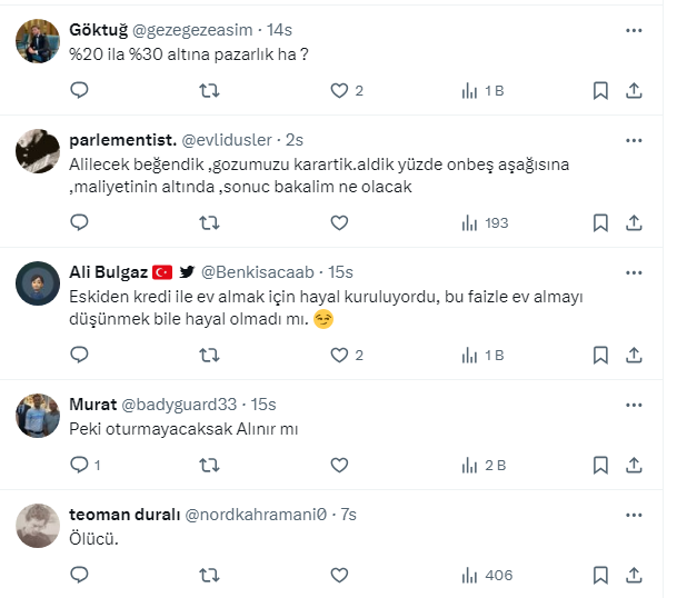 Eski konutlar içinse KKM dönüşüne %85 mevduat faizi verilen,krediye erişimin ise sıfır ya da çok maliyetli olduğu şu ortamda piyasada karşılığı olmayan rakamlar istenmekte.