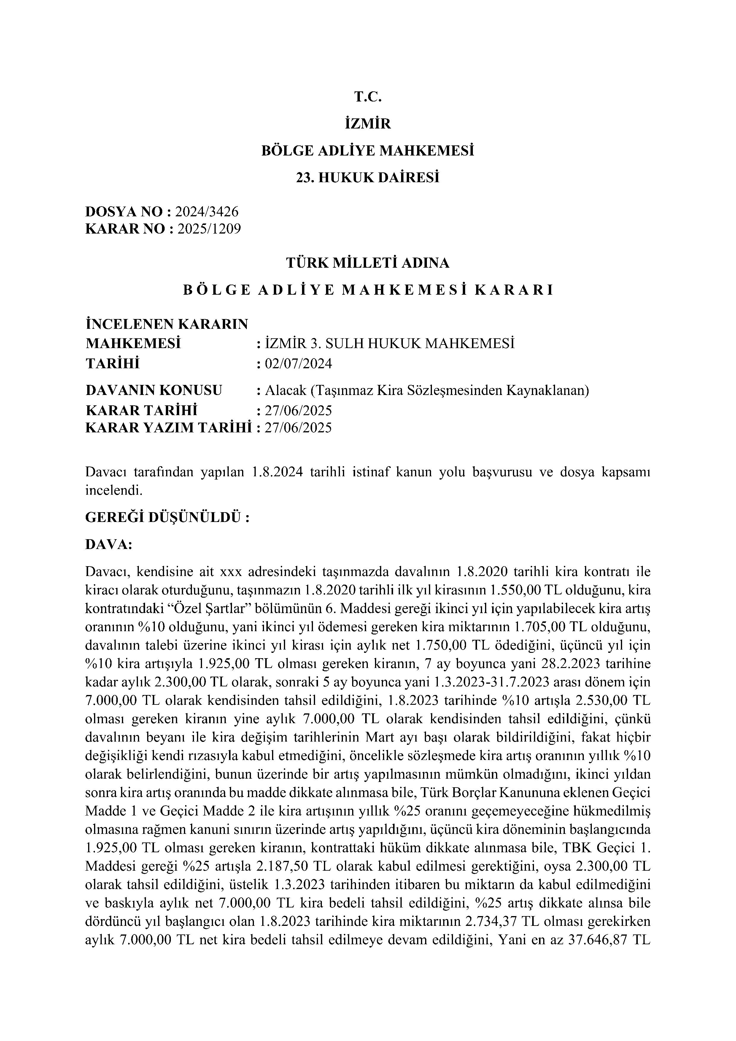 Konuyla ilgili İzmir'de yaşayan bir kiracı, yüzde 25 üzerinden fazla yatırdığı kiraları daha sonradan almak istedi ve mahkemeye gitti. Konuyla ilgili İzmir Bölge Adliye Mahkemesi, 'iade olmaz' kararı verdi.