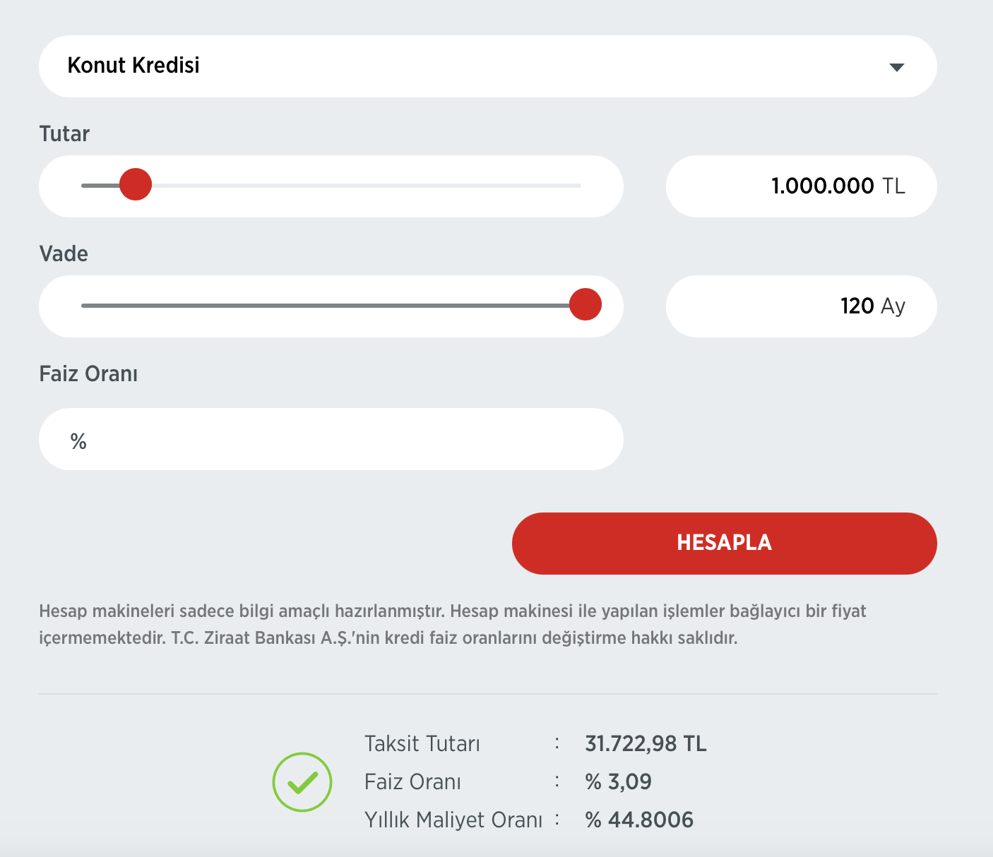 ZİRAAT BANKASI KONUT KREDİSİ FAİZ ORANLARI ARALIK 2024