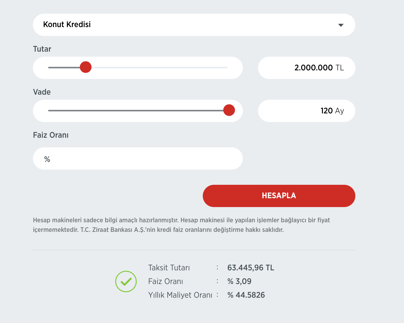 ZİRAAT BANKASI KONUT KREDİSİ HESAPLAMA ARALIK 2024